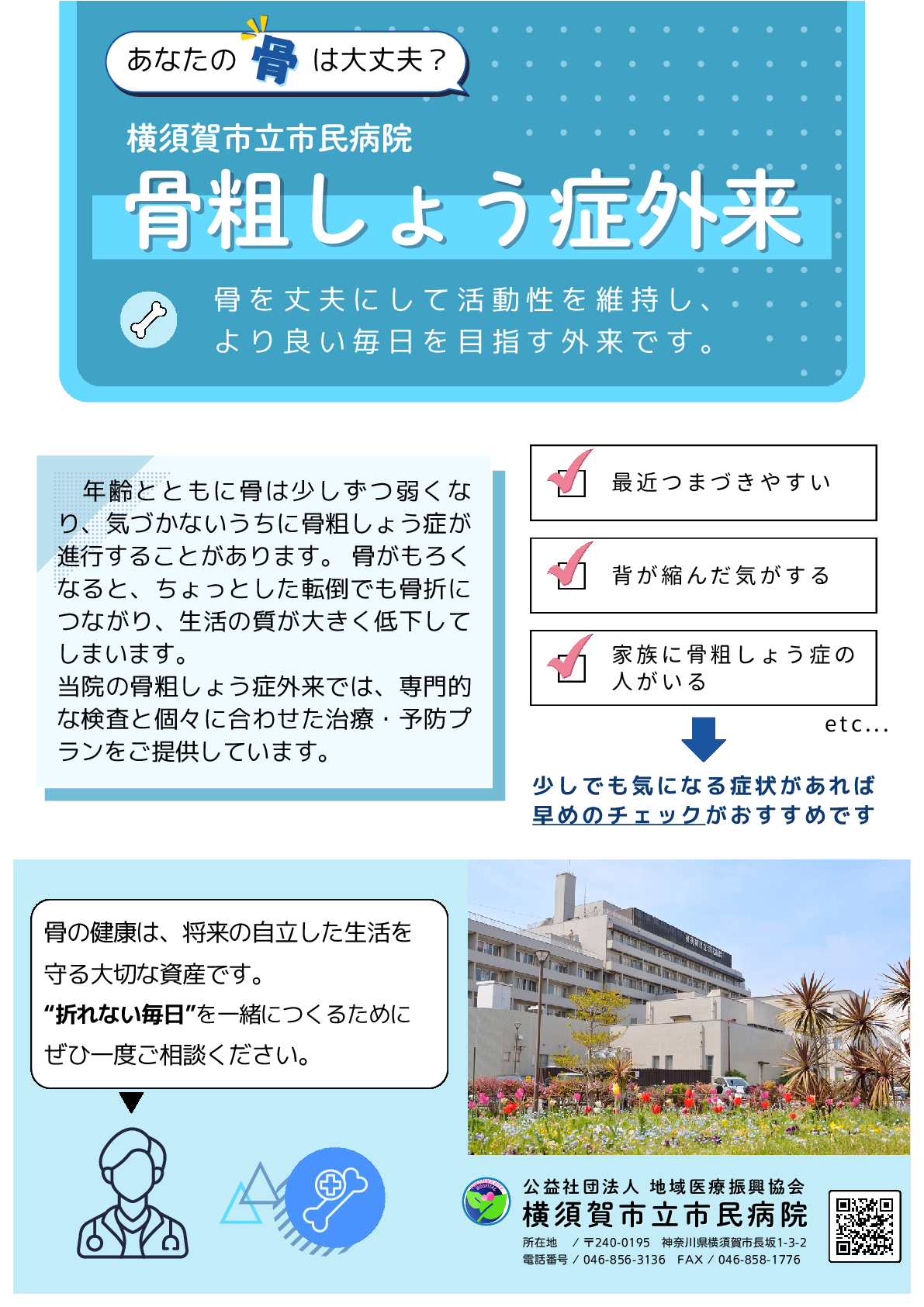 当院整形外科では、骨粗しょう症外来を実施しています。専門的な検査と個々に併せた治療・予防プランを提供しておりますので、ぜひ一度ご相談ください。